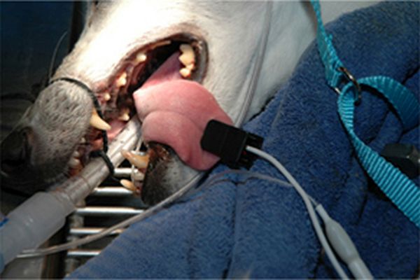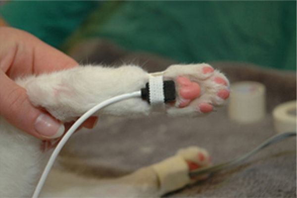 If the animal is large enough, it has been reported by some veterinarians that the prepuce or vulva might be an alternate site for the lingual clip sensor. Remember that this site must be well perfused and not pigmented.